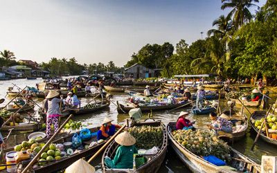 Route pour Can Tho, ville provinciale du Delta du Mékong. Arrivée à Can Tho, installation à l’hôtel et découverte de la « Capitale du Delta du Mékong », notamment la pagode Ong, le quai de Ninh Kieu et le marché central de Can Tho.
